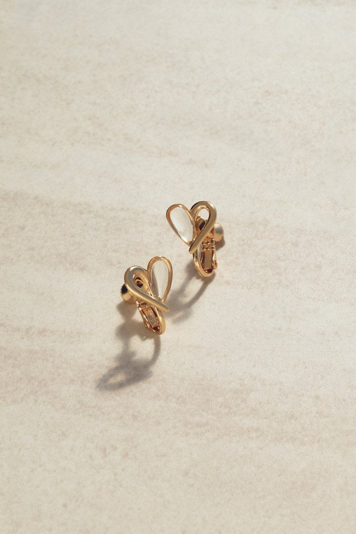 クリア × メタル ミニマム ハート イヤリング
