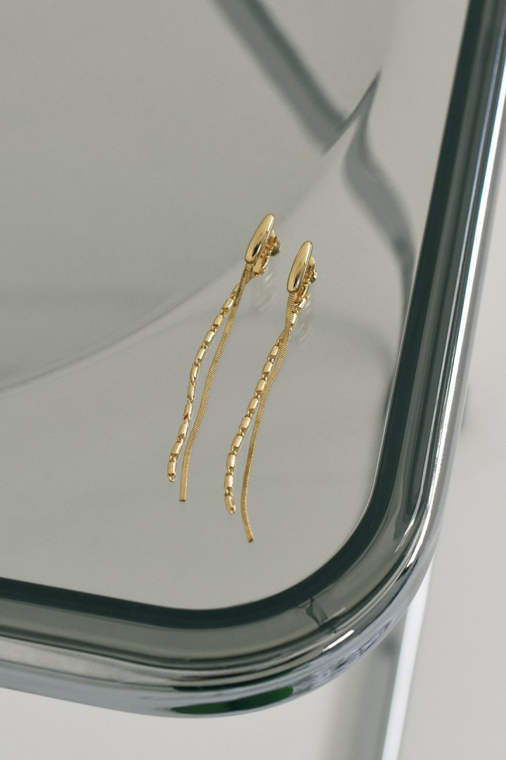 ダブル ライン チェーン ロング イヤリング