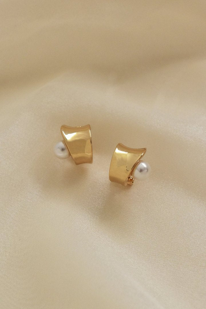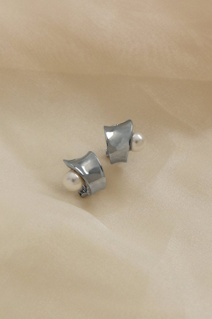 カーヴィー メタル パール イヤリング