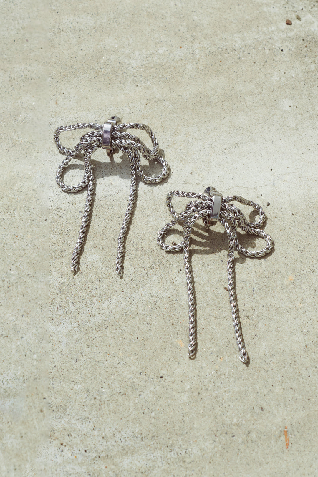 レイヤード チェーン リボン イヤリング