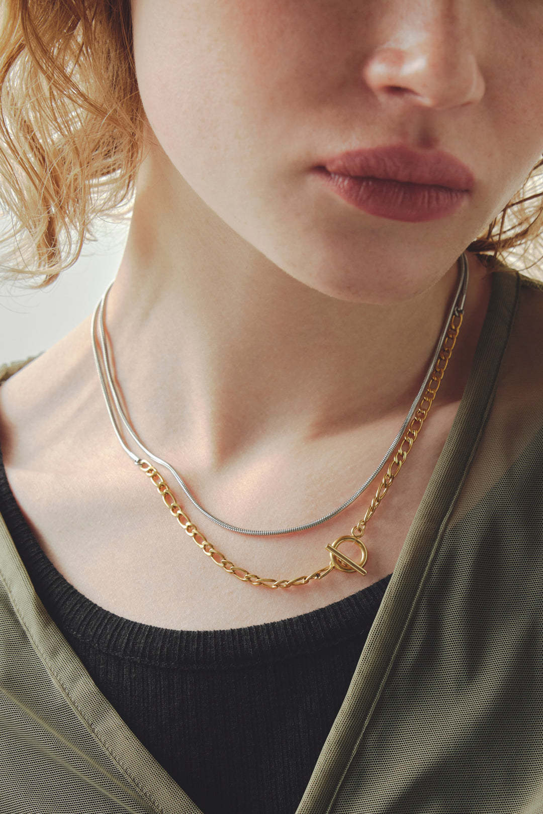 スイッチング チェーン マンテル ロング ステンレス ネックレス