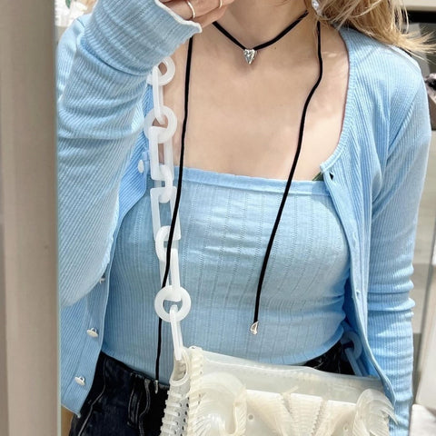 ジグリー メタル ハート ベルベット タイ ネックレス
