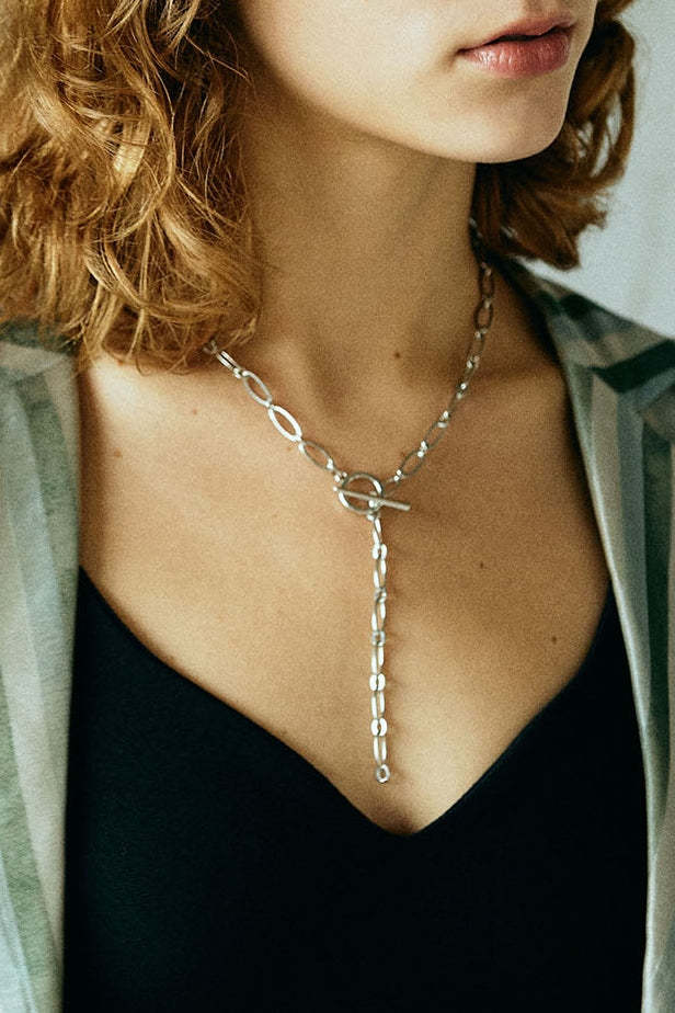 "Y"シェイプ メタルチェーン マンテル ネックレス